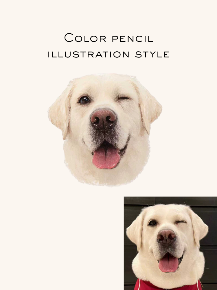Your photo is transformed into a warm, textured colored pencil illustration, drawn digitally by our artist. This style prints beautifully, clean, cute, and full of personality.